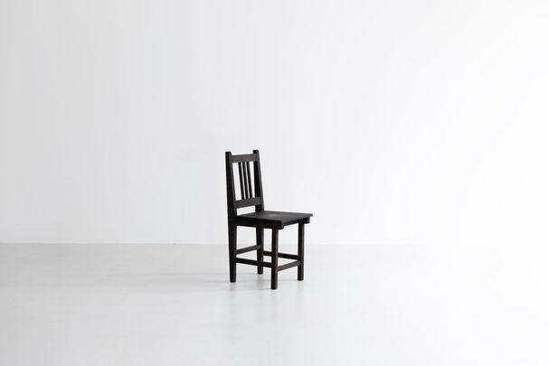 日本において現在の椅子の形が広まりを見せ るのは明治維新後、西洋の文化の流入と共に、床にそのまま座る文化から徐々に変化を 遂げたと言われています。一般家庭に椅子が普及したのは 1950 年代以降、高度経済成長期にダイニングキッチンが建築の内装に採 用されていったことから日本人の生活様式は一気に西洋化していきました。文化としては未だ歴史の浅い日本の椅子の形を考えた時 に、「潔い形状」「金具を使わない構造」「座り心地の良さ」をキーワードにデザインを練り上げていきました。素材に「桜」を使用し、 後ろ脚がやや内側に入ることによって、どこか儚げな印象をもたせることで日本の椅子として成立させました。
